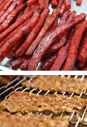 30年來如一日堅持手工現烤。所有豬肉乾採用新鮮豬後腿肉,以釀造 180天的家傳 古早味 醬油醃製而成,真空按摩後 高溫烘烤,厚度、熟度、 色澤須同時兼顧,火候拿捏成了獨門技 術。 快車的招牌商品可謂厚薄雙絕。最暢銷的杏仁薄脆肉紙,平均每片要花1.5小時 方能製作完 成,厚度僅0.01公分,薄可透光,爽脆香酥。為了防止碎裂,包裝 時需要人工費神一片一片 夾入。還有1公分招牌特厚豬肉乾,為了確保新鮮度每 天限量製作,豐厚扎實、肉汁香甜。 今年,再度開發新產品元氣條,成為上班 族團購新寵。 過去,肉乾主要用來年節送禮,因為吃肉可是奢侈的享受。但現代人重視健康,講究養生, 大塊吃肉逐漸讓人生畏。快車肉乾由於食材天然、毫不油膩、卡路里低,反而成為樂活時 代的良伴。不少老客戶回饋創新吃法給快車團隊, 例如一個職業婦女用快車的肉乾丁代替 火腿丁,研發了美味又簡易的肉乾丁炒 飯;想減肥但不想吃素的年輕上班族將爽脆的肉紙 片捏碎灑在生菜沙拉上;還有宅男自創懶人式肉紙握飯…等,種種輕肉食主義的新吃法, 讓健康與美味一 兼二顧。 傳統市場出身的快車肉乾,即使上網行銷、開了新門市、在百貨公司設櫃,仍 然保有濃濃 的人情味。堅守南門老店的阿姨們,一路看著雨新長大,與當年那位幫忙烤肉乾的女朋友 結婚生子,接下列車長的棒子。 快車繼續行駛,一串串的記憶像鐵軌一樣長,家鄉好滋味綿延飄香… |